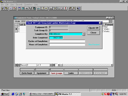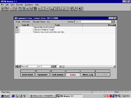 three tasks (1,2 & 3), for equipment ID #5 -Task Group B (notice the #5 above