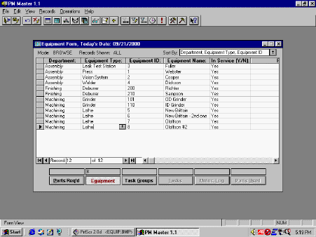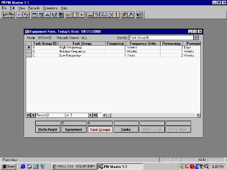 three task groups (A, B, & C), for equipment ID #5 (notice the #5 above