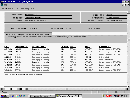 Corrective Action (to be issued to a vendor)