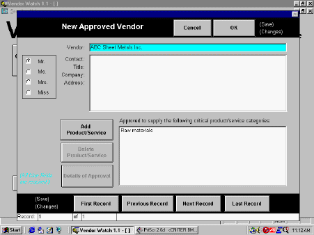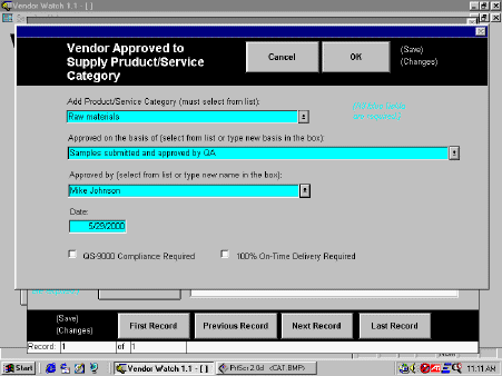 required by ISO-9000, approval details are required by Vendor Watch